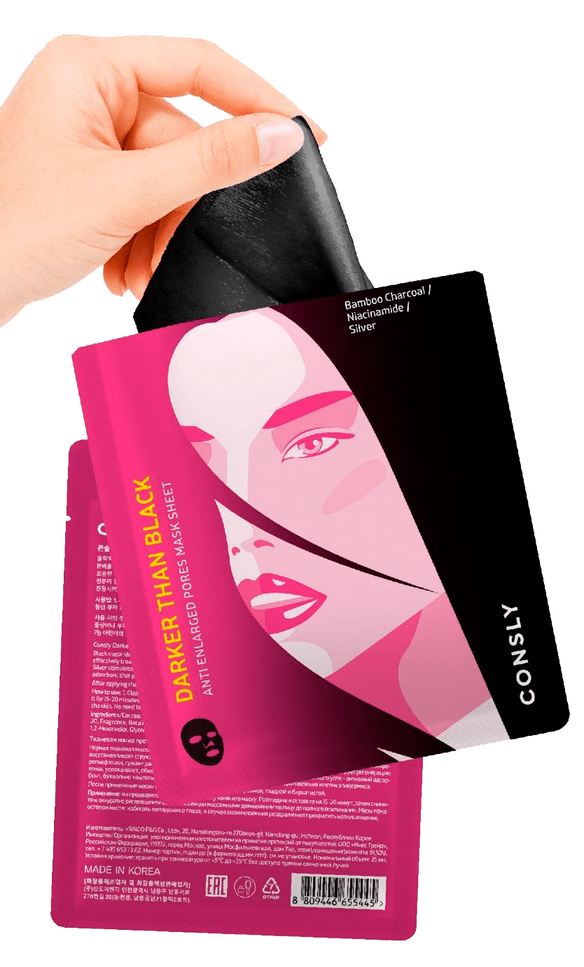 After the application of the mask sheet, the pores shrink, the skin becomes even, smooth and velvety.