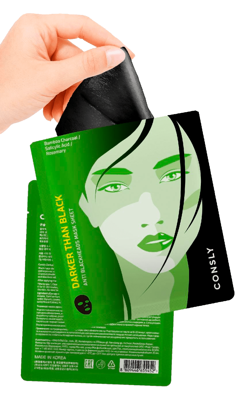Black Face Mask Sheet with rosemary extract, charcoal powder and BHA activates the renewal processes, removes oily shine, improves skin tone and texture.