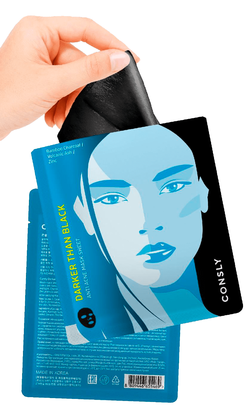 Black Mask Sheet with zinc, charcoal powder and volcanic ash removes toxins, soothes, efficiently resolves the imperfections and evens out the skin tone.