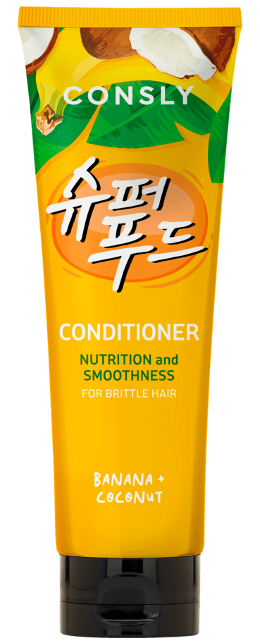 Conditioner with banana extract and coconut water nourishes and smoothes the hair, preventing dryness and breakage.